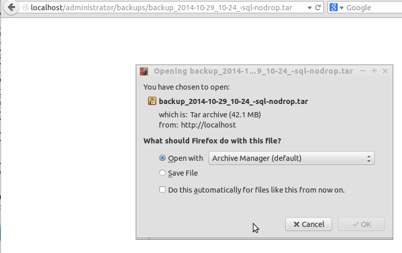 -rw-r--r-- 1 www-data www-data 44177408 Oct 29 13:15 backup_2014-10-29_10-14_testsite-sql-nodrop.tar